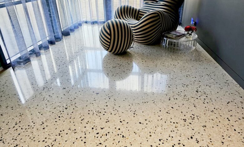 Polished concrete floors feature a sleek, industrial-style finish that is suitable for modern or minimalist rooms.